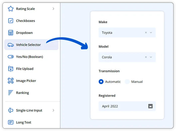 Build reusable custom question types with an intuitive drag-and-drop editor. Tailor logic, UI, and behavior - no code or complicated deployments required.