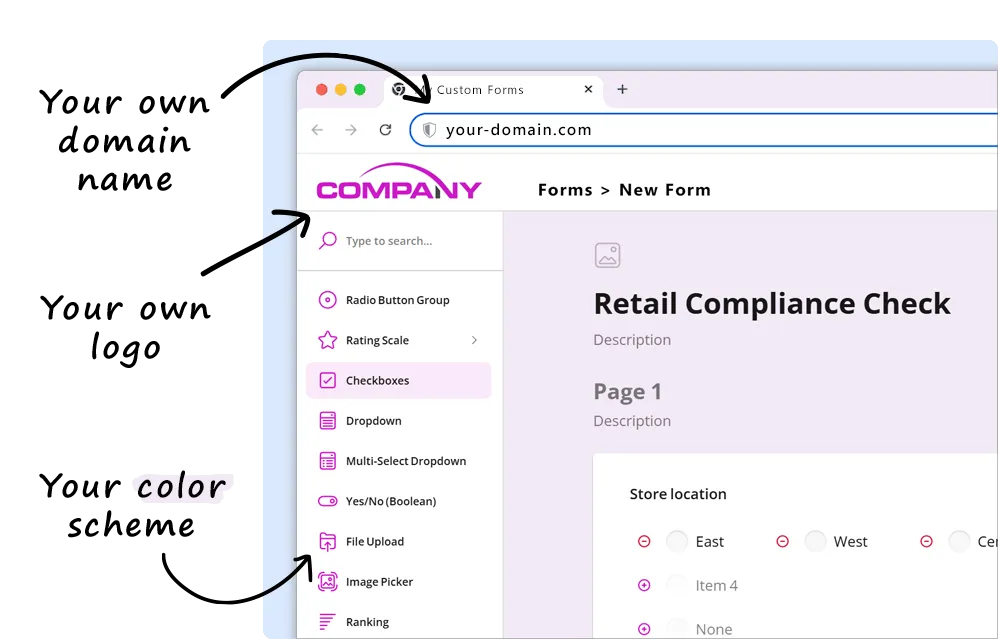 Preserve your brand identity with full control over appearance. Match your corporate color schemes, fonts, and styling across both the frontend and backend.